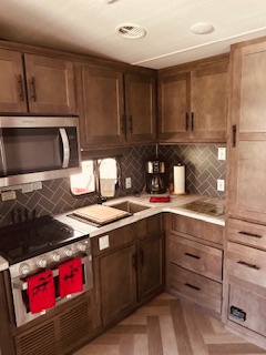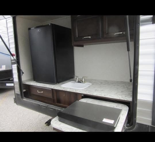 - Well-Equipped Kitchen: Fully functional with a refrigerator, stove, microwave, and ample storage. Comes with outdoor side mini fridge and sink.